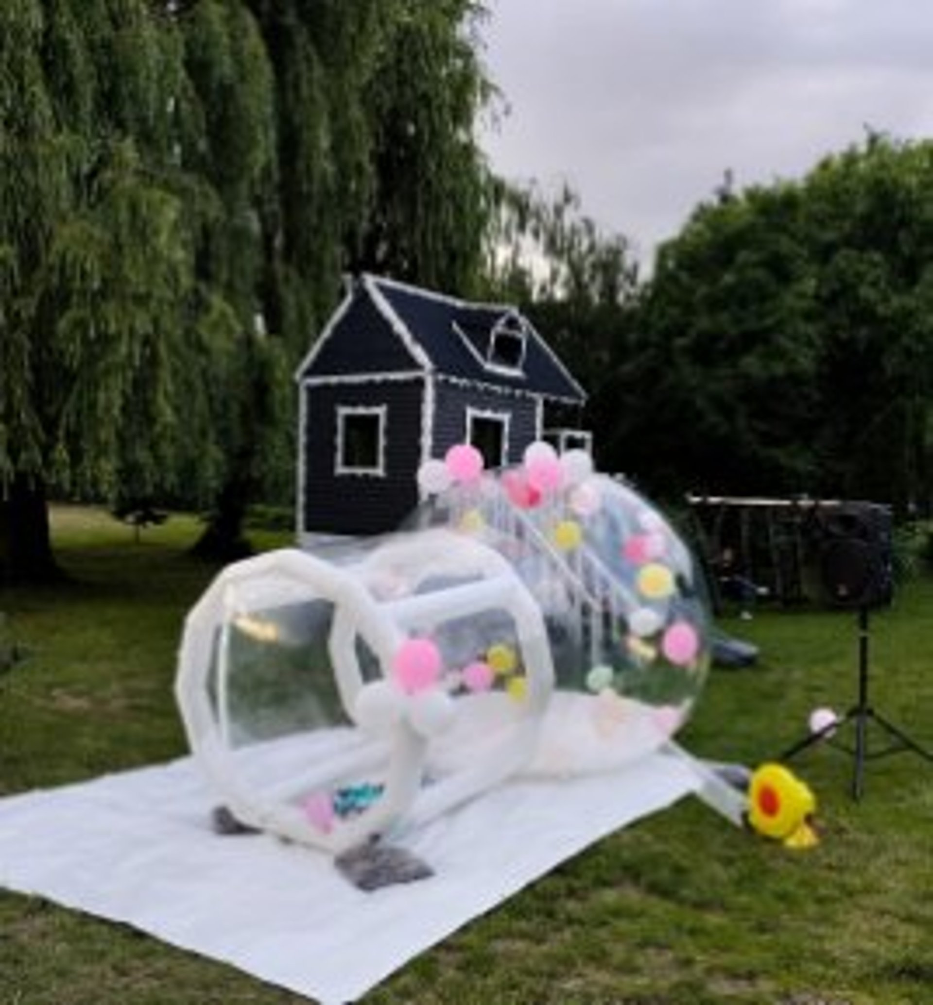 Bubble House to przezroczysta kopuła wypelniona wirującymi balonami - fotogeniczna, elegancka i dająca mnóstwo radości zarówno dzieciom, jak i dorosłym. To doskonała sceneria do Twoich zdjęć i filmów. Idealna propozycja na urodziny, festyny, pikniki rodzinne oraz imprezy plenerowe. Zapewniamy transport, montaż oraz pełne przygotowanie atrakcji, aby była gotowa do zabawy od pierwszej chwili wydarzenia.