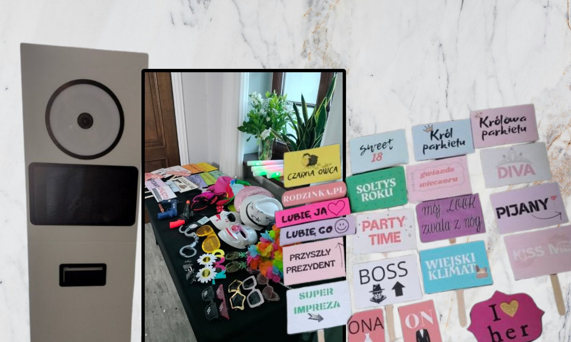 Profesjonalna fotobudka na Twoje wydarzenie – dostępna w trzech wariantach czasowych (dłuższy czas ustalany indywidualnie). W pakiecie zapewniamy mnóstwo gadżetów, księgę gości oraz pełną obsługę.